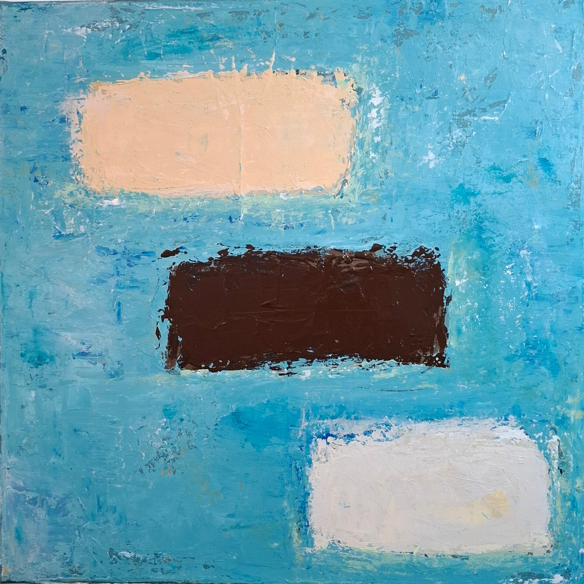 Dieses Werk entstand nach meinem Urlaub in der Normandie. Dieses Blau, dieses Beige und dunkle Braun der Fachwerkhäuser, die weißen Felsen von Étretat haben sich tief in meiner Seele verankert. Die Farben strahlen Ruhe aus, wie die Landschaft der Normandie, zum Fallen lassen.